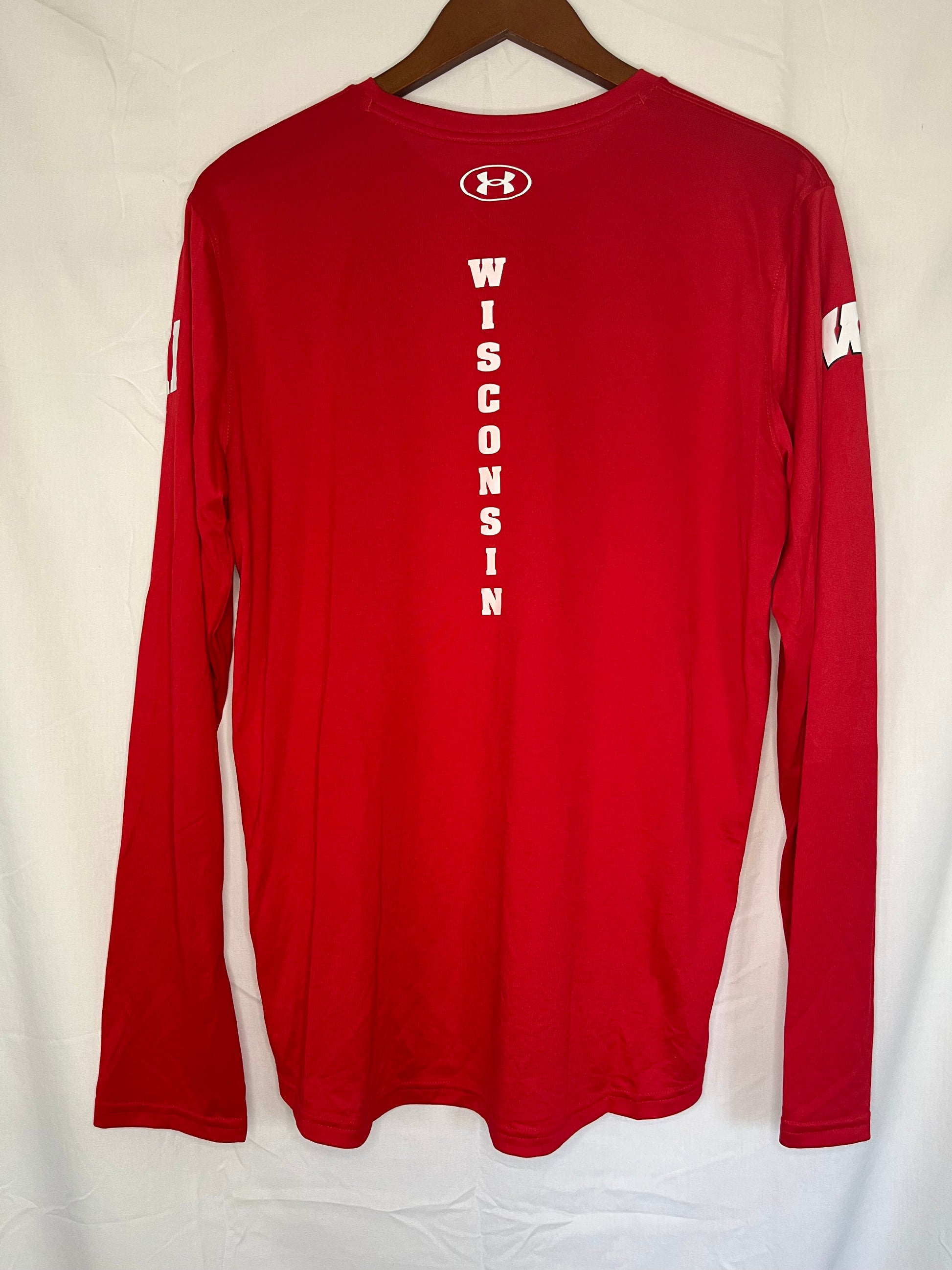 Red long sleeve Under Armour dry-fit practice shirt. Number 11 on back.